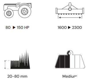 Medium-heavy reversible shredder for tractors from 80 to 150 HP with working widths from 160 to 235 cm. It can be used to work both in vineyards and in open fields.