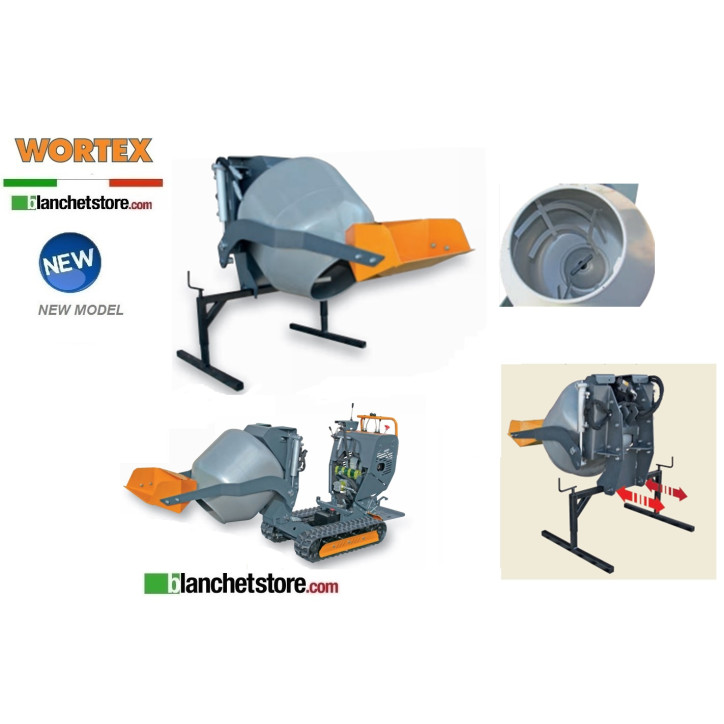 Concrete mixer function: Adds a rotating drum/agitator that allows mixing concrete, mortar, or similar materials on site without needing a separate mixer machine.