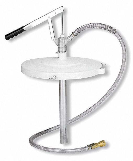 Filler pump for centralized greasing systems, 50 kg drums. Includes a 405 mm drum cover. Medium pressure lever action pump with 1,5 m hose and a 2-HK (1/4″) hydraulic connector for filling the reservoir of centralized greasing systems. Includes pump, cover, hose, and hydraulic connector.