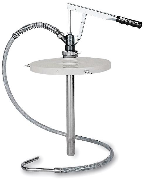 Gear oil dispenser, with 330 mm cover for 20 litre pails and 1,5 m transparent hose with nozzle.