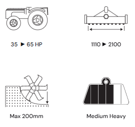 The RD medium fixed rotary tiller includes a power range from 35 to 65 horsepower and is a professional range model with working widths of up to 210 cm.