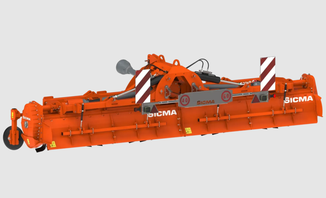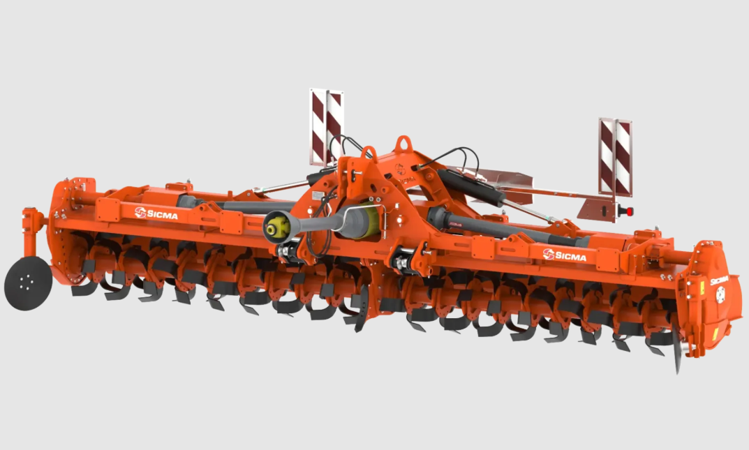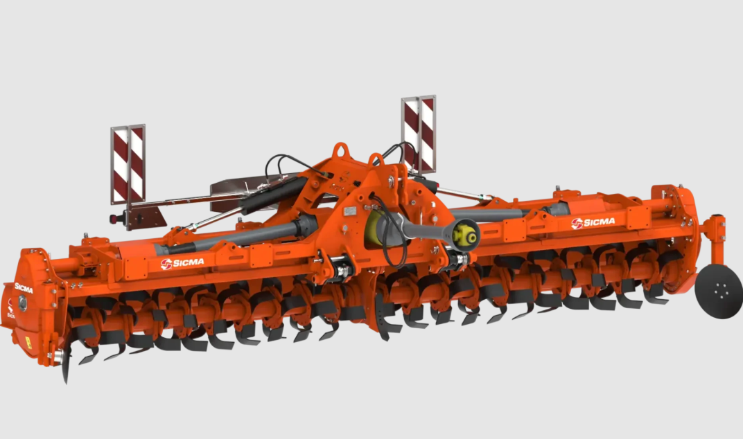The RK XL is a highly professional, very heavy, fixed, foldable tiller for tractors with high power up to 360 HP. Its robustness and the high quality of its components allow it to perform very intense and long-lasting openfield work. Available with a rotor with hoes or blades.