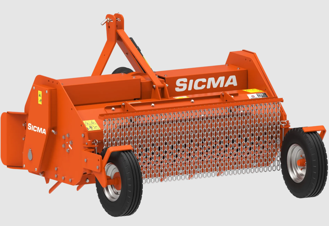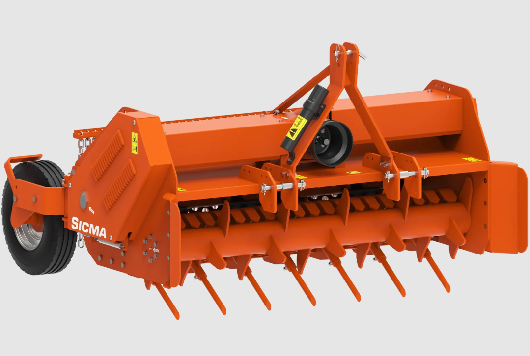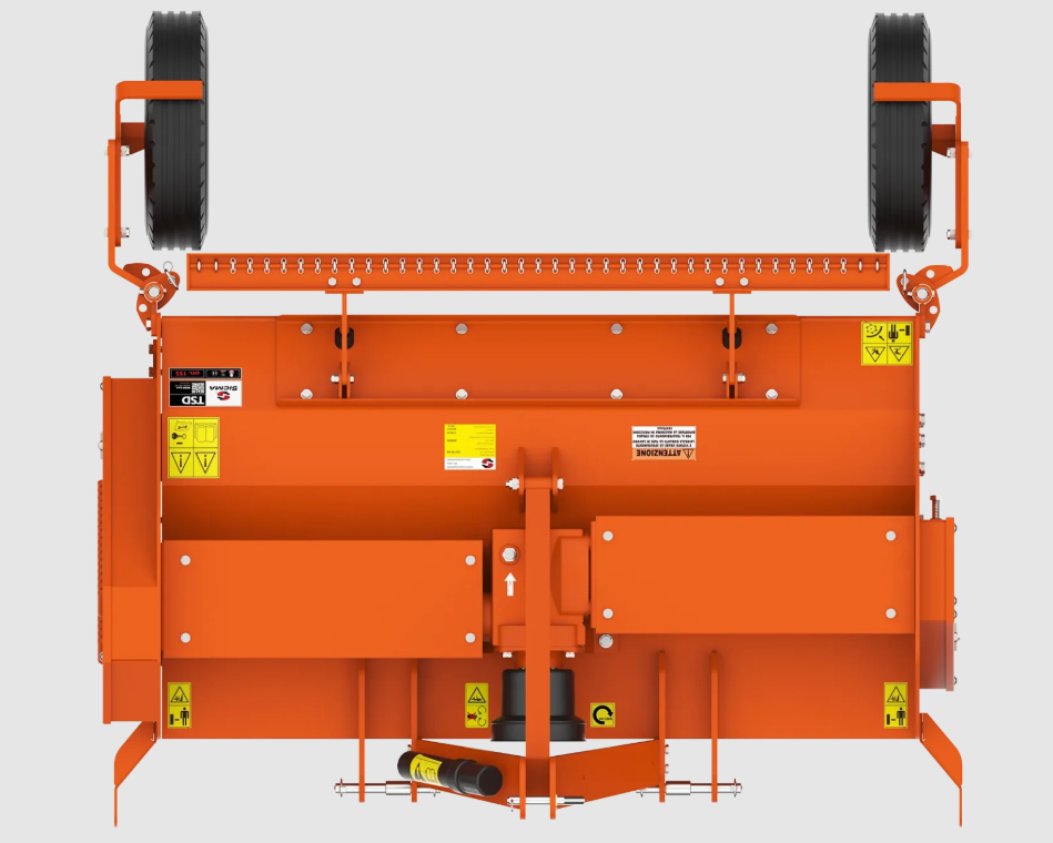 Fixed heavy shredder for tractors from 40 to 90 HP with widths from 95 to 170 cm which, thanks to the “pick up” rotor, collects any pruning residues, transferring them into a shredding chamber where they are finely chopped and then deposited on the ground through a discharge grid. Particularly suitable for stony soils.