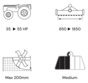 compact tractors. It can be equipped with a spiked roller to facilitate soil aeration and drying.