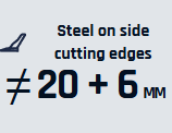 – steel on side cutting edges HB400 – ≠ 20+6 mm