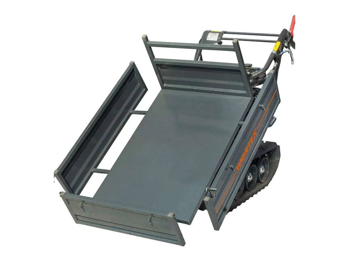 Description: A tracked crawler barrow nearly identical in role to the SFH 300 but often with a Loncin G200 petrol engine. Strong steel construction, extendable sides and a manual tip box make it a reliable workhorse for up to 300 kg loads across mixed terrain.